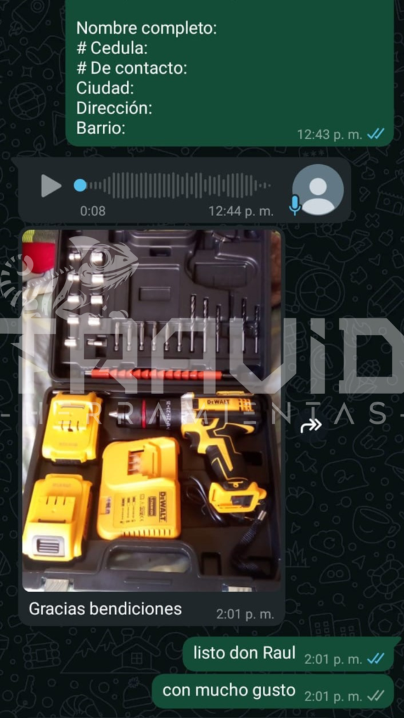 Respuesta: El taladro tiene un precio de $230,000. Además, puedes pagar contraentrega y recibirlo con envío gratuito a todo el país.