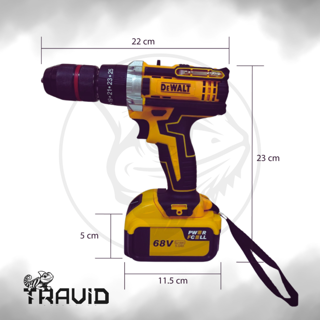 🚨 ¿Buscas un taladro potente y versátil? Este taladro inalámbrico 68V con percutor, 3 funciones y mandril metálico de 13 mm es ideal para cualquier tarea. Incluye 2 baterías, 9 copas, 6 brocas, 7 puntas y más.